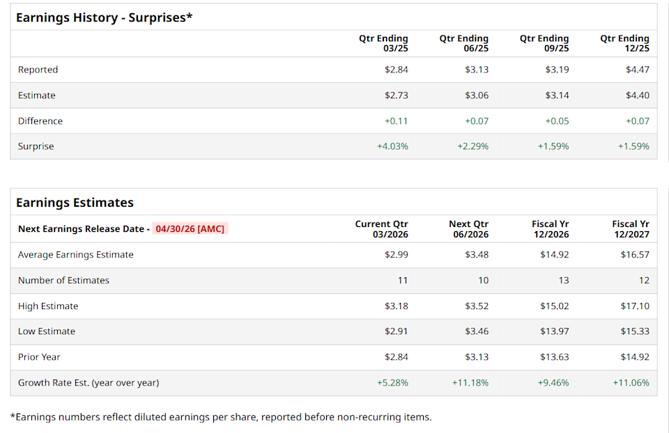 The above button links to Coinbase. Yahoo Finance is not a broker-dealer or investment adviser and does not offer securities or cryptocurrencies for sale or facilitate trading. Coinbase pays us for certain activity generated through this link. Prices displayed are informational. Valued at a market cap of $131.5 billion, Stryker Corporation (SYK) is a medical technology company that is widely recognized for its market-leading Mako robotic-arm assisted surgery platform and a diverse portfolio that includes joint replacement implants, surgical equipment, and neurovascular intervention tools. The Portage, Michigan-based company is expected to announce its fiscal Q1 earnings for 2026 after the market closes on Thursday, Apr. 30. Ahead of this event, analysts expect this healthcare company to report a profit of $2.99 per share, up 5.3% from $2.84 per share in the year-ago quarter. The company has topped Wall Street’s bottom-line estimates in each of the last four quarters. In Q4 2025, SYK’s EPS of $4.47 outpaced the consensus expectations by 1.6%. Tesla Earnings, Hormuz and Other Key Things to Watch this Week Netflix Generates Massive FCF and FCF Margins - NFLX Price Targets Are Higher Profit Jumped 58% at Taiwan Semi. Does That Make TSM Stock a Buy Here? Our exclusive Barchart Brief newsletter is your FREE midday guide to what's moving stocks, sectors, and investor sentiment - delivered right when you need the info most. Subscribe today! For the current fiscal year, ending in December, analysts expect SYK to report earnings of $14.92 per share, up 9.5% from $13.63 per share in fiscal 2025. Its EPS is expected to further grow 11.1% year-over-year to $16.57 in fiscal 2027. SYK has declined 1.7% over the past 52 weeks, considerably underperforming both the S&P 500 Index's ($SPX) 34.9% return and the State Street Health Care Select Sector SPDR ETF’s (XLV) 9.8% uptick over the same time period. On Mar. 16, shares of SYK rose 3.8% as investors bought the dip following a sharp recent decline triggered by a cyberattack. The stock had previously suffered a significant correction after the company revealed that a breach linked to the pro-Iranian group Handala had wiped data from more than 200,000 systems, disrupting order processing, manufacturing, and shipping. Despite these disruptions, Stryker confirmed that its products remained safe. The rebound suggests investors viewed the sell-off as excessive, a view supported by analysts at Jefferies Financial Group Inc. (JEF) and William Blair, who maintained “Outperform” ratings, citing the company’s strong underlying business. Wall Street analysts are moderately optimistic about SYK’s stock, with a "Moderate Buy" rating overall. Among 28 analysts covering the stock, 18 recommend "Strong Buy," three indicate "Moderate Buy,” and seven suggest "Hold." The mean price target for SYK is $422.30, indicating a 24.4% potential upside from the current levels. On the date of publication, Neharika Jain did not have (either directly or indirectly) positions in any of the securities mentioned in this article. All information and data in this article is solely for informational purposes. This article was originally published on Barchart.com