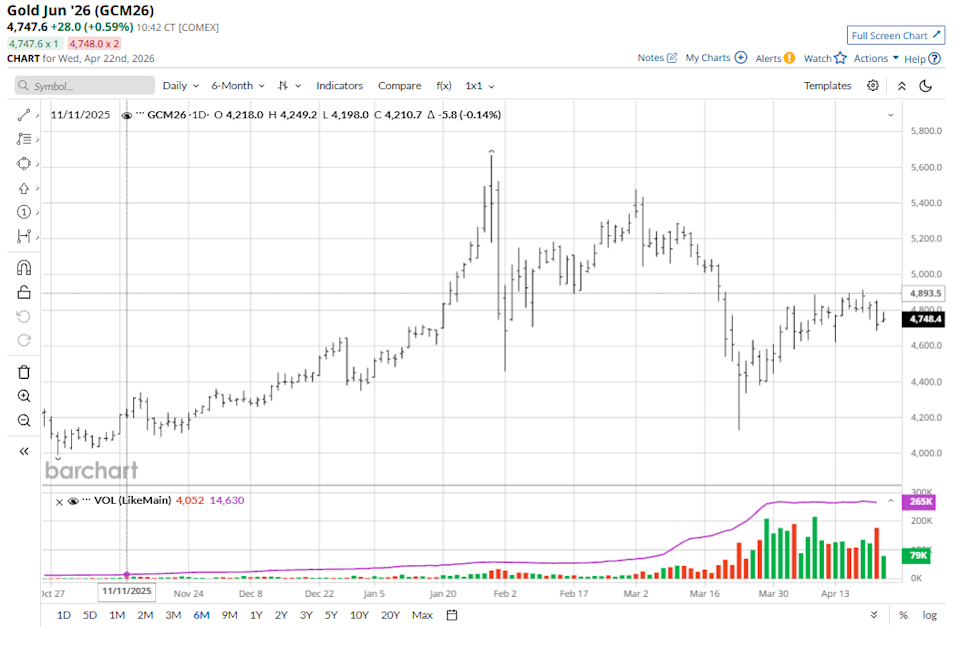 There are several major “outside markets” that can and do have a daily, and sometimes significant, impact on the price movements of gold (GCM26) and silver (SIK26). These markets include global stock indexes, the U.S. dollar index ($DXY), crude oil (CLM26), and U.S. Treasuries. Importantly, the outside markets’ impact on the two precious metals is not static. Let’s look at the key outside markets and their present daily price impacts on gold and silver. The past few weeks have highlighted a market correlation that has surprised even veteran traders and market watchers: risk-on stock indexes and risk-off gold and silver are rallying at the same time and selling off at the same time. Dollar Climbs on Strong US Economic Reports Dollar Advances with US-Iran Talks in Limbo Dollar Slips as Strength in Stocks Curbs Liquidity Demand Stop Missing Market Moves: Get the FREE Barchart Brief – your midday dose of stock movers, trending sectors, and actionable trade ideas, delivered right to your inbox. Sign Up Now! History and logic would dictate safe-haven gold and silver prices appreciating on trading days when the stock market is under selling pressure due to keener risk aversion in the general marketplace. And history and logic would dictate gold and silver selling off amid risk-on days when the stock market is posting good gains. Nope. Not in today’s trading environment. There is no doubt traders are fickle, and when traders are fickle, markets can seem illogical. There is no single, absolute reason why gold and silver and the stock indexes have been more closely (but not always) tracking each other lately. However, my interpretation of the phenomenon is that metals traders are at present more concerned about tighter monetary policies from the major central banks, including the associated inflation risks, choking off consumer and commercial global demand for metals. Such a scenario also would be bullish for the U.S. dollar. An appreciating greenback is historically bearish for gold and silver. Metals traders, at present, appear to be less concerned about rallying risk asset prices (stocks) taking away investment demand from safe-haven gold and silver. It can also be argued that rallying stocks imply easier central bank monetary policies and lower interest rates. (Implying better global demand for metals). Crude oil is arguably the leader of the raw commodity sector. It’s the most fungible commodity market. Price history shows that when oil rallies, many other commodity markets also see better buying interest. That’s still the case nowadays — except when it isn’t. The past few weeks, gold and silver have on certain days seen their prices sell off on days when crude oil prices are higher and even solidly up. On those days, the metals traders reckon sharply rising crude oil prices mean higher gasoline prices at the pump, which in turn will hurt economies and constrain demand for metals. However, gold and silver prices in recent weeks have rallied on the same days crude oil prices have posted good gains. Remember, traders are fickle. Trying to figure out what fundamental elements traders will deem most important on any given day seems to be a fool’s errand. I’m still of the opinion that higher crude oil prices are and will be overall bullish for most raw commodity markets, including precious metals. Gold and silver carry no dividends, cannot be discounted in price for a guaranteed higher payment later, nor do they provide any coupon rate payment. Bonds do. When bond yields rise, it makes them more attractive for investors. That’s a bearish element for gold and silver from a competing asset class perspective. Rising bond yields mean expected higher interest rates, too. Higher interest rate limit demand for commodities. Rising U.S. Treasury yields suggest a stronger U.S. dollar on the foreign exchange market. Rising bond yields also imply that inflation could become problematic for economies. Gold and silver in recent years have seemingly let loose of their grip as a hard-asset inflation hedge. My bias is that gold and silver remain inflation hedges. The reason the two metals have not displayed more price strength when inflation has risen in recent years is that inflation levels have not been problematic enough to create major problems in economies — such as was the case in the late 1970s when annual inflation came close to 15%. My bet is that if annual inflation rates move to double-digit levels, the markets and the public will be spooked and will look to hard assets to hedge that inflation. Tell me what you think. I enjoy hearing from my valued Barchart readers from all around the globe. Email me at jim@jimwyckoff.com. On the date of publication, Jim Wyckoff did not have (either directly or indirectly) positions in any of the securities mentioned in this article. All information and data in this article is solely for informational purposes. This article was originally published on Barchart.com