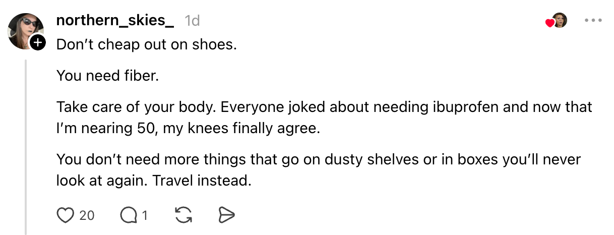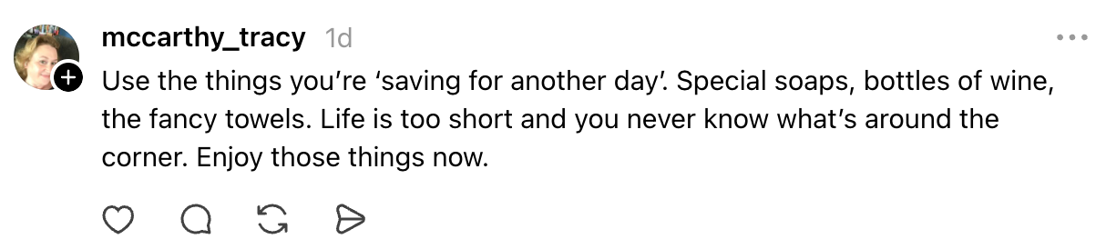 “You don’t need more things that go on dusty shelves or in boxes you’ll never look at again.”