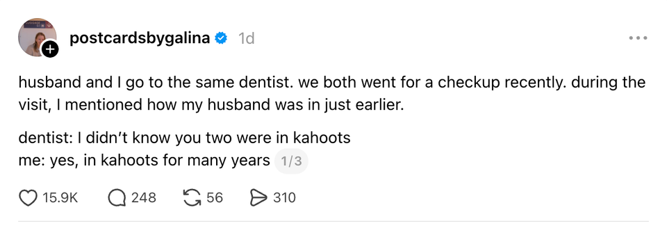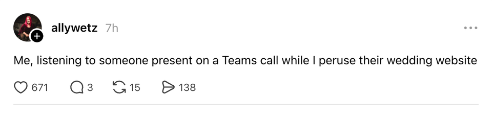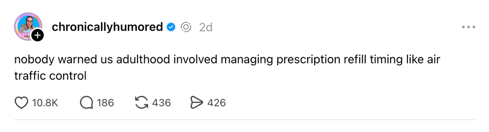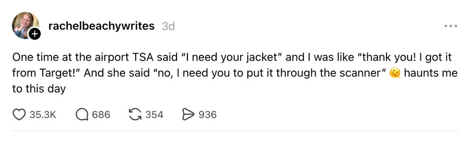 The ladies of the internet never fail to brighten our day with their brilliant and succinct wit. Each week, HuffPost Women rounds up their hilarious musings. Scroll through this week’s great tweets, threads and other posts from women, and then visit our “Funniest Tweets From Women” page for past roundups. Sign up for our Funniest Tweets of the Week newsletter here. watching reality tv is deeper and more anthropological when i do it make sure you choose a password that contains capital letters, numbers, and special symbols so that someday the data broker who purchases your info can go "ooh good password" after your login details are inevitably leaked in a data breach you can do nothing to prevent me suspecting every character in a murder mystery book and then saying "I knew it" once the murderer is revealed. best friend who was been my friend for more than 15 years: pic.twitter.com/noGGO5JRKB I get semi-frequent stomachaches after seeing a movie because my cinema-loving soul is sad to leave the theater. NOT because of the popcorn. That simply wouldn’t be possible This Straight of Hormuz shit is going to be the hardest AP history exam in 20 years microplastics in brain bad. neuroplasticity good. make it make sense Antiques Roadshow is appraising Pearl Jam concert posters so it is time for me to make a reservation at the graveyard at 26, i went on a date with a guy who listened to gregorian chants like it was house music. any room can be a rage room if you just give me a fucking minute they had me at “this hippo isn’t playing games” https://t.co/KhCbmNbWDm People who take 17 minutes to check in at hotel front desk, what you talking to them about? The first woman to give birth to twins was probably like "???????????" I really wish I was a woman of few words. Unfortunately, you will hear from me. 👍🏽 Younger guys now have haircuts like the Golden Girls. No shade at all just an observation. you’d never be able to tell now but years ago i was like… severely addicted to opening the door for guys and being like “ladies first” as they stepped in Whoever named Red Delicious apples was off their meds that day. in preschool they asked my mom (a doctor) to teach helmet safety. my dad bought 2 cantaloupes, drew faces on them, and my mom dropped them—one helmeted, one not. the unhelmeted one exploded on the class. mom said, “this is why you wear a helmet.” she was not invited back. By entering your email and clicking Sign Up, you're agreeing to let us send you customized marketing messages about us and our advertising partners. You are also agreeing to our Terms of Service and Privacy Policy.