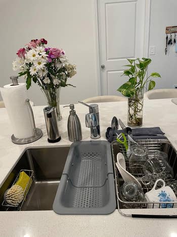 We hope you love our recommendations! While every product is independently chosen by our editors, BuzzFeed and our publishing partners may collect a share of sales or other compensation from the links on this page. You can read more about how our affiliate partnerships work in our Editorial Standards & Ethics Guide. Excuse me, gotta grab my stationery to write a little “thanks” to my air fryer. I personally don't think *anyone* works harder than the items in a kitchen. From a dual-zone air fryer that literally can cook two things at once and a FryAway cooking oil solidifier to a Dawn Platinum Powerwash (that I'm not convinced wasn't crafted by cleaning wizards) to a one-click Nespresso Vertuo Pop+, these items are putting in the EFFORT. It's about time you find out just how great they are, don't ya think? Promising review: "I absolutely love these silicone lids. It is so satisfying to lay it on a glass storage container and lift it up because the seal is so strong. I eat a lot of leftovers, and it is so easy to pop one of these on top of my dinner plate and throw it in the microwave. It drapes down the edges without creating a seal, so it keeps the food from splattering. I do wish that they offered color choices." —Candace Get a set of three from Amazon for $9.49+ (also available in a set of eight). Promising review: "This item was a splurge for me. I’ve been spending more time in the kitchen and have been looking for fun ways to elevate the vibe. I usually hide my oil away, but this is the perfect, convenient way to store it. It looks intentional and is very functional for someone like me who loves skipping the extra step of reaching into the pantry. Also, so far, no issues throwing this guy in the dishwasher." —4lexa Get it from Anthropologie for $108 (available in three colors). Promising review: "I love tulips and especially love this color scheme. I saw this set in a magazine and was thrilled to find it available here. It’s not exactly large, but it’s definitely adorable! So glad I bought it!" —cbs4818 Here's what BuzzFeed Shopping writer Emma Lord says: "I've owned one of these babies and have faithfully used it every week for upward of two years, and especially love it while working from home — it simplifies breakfast because I know no matter what assortment of groceries I'm working with, there are precooked eggs to add some protein to it (I like mine medium-boiled 🍳). If my dinner is boring or seems like it needs a little extra "oomph" to it, I'll throw in an egg from this too. Some reviews note that the alarm on it is a little loud, but the new models have significantly decreased the volume and sing a little song instead!" Promising review: "I saw someone on TikTok with this and gasped! Ordered it right away. I had no idea these things existed. Super easy and convenient and the hard-boiled eggs came out perfectly. I’m testing a batch now without punching a hole in the eggs to see how they come out. Because why not make an easy process even easier?!?! LOL." —Gina Get it from Amazon for $19.99 (available in seven colors). Promising review: "I got this so I don't always have to Google or ask Alexa about conversions. It's really cute, too. I use it a lot, so it's coming in handy more than I thought it would." —Kindle Customer Get it from Amazon for $9.95 (available in black or white and in horizontal or vertical). Psst, as you can see above, this set also comes with a crumb catcher where your stovetop meets your countertop! Promising review: "I've been using the foil ones and while they do the job, they're not so nice to look at. I like that this is black so it matches the original color of the appliances, but more importantly I like that this has a larger surface area to catch the drips that the foil ones never could before. They're also trim to fit, so they get right up into each burner without leaving gaps where drips can burn where it's hardest to clean. Overall recommended." —Michael Get an 8-pack from Amazon for $13.99+ (available in six colors and three sizes). Promising review: "I love this pitcher, it looks exactly as pictured. This is so festive and perfect for fun gatherings." —EDoodles Get it from Anthropologie for $19.60 (originally $28). This colander can expand from 14.5–19.5 inches. It's top-rack dishwasher safe as well! BuzzFeed editor Jenae Sitzes has and loves this product: "I have this colander in the pink color and absolutely love it! I don't leave it out on my sink permanently, but I've hung it right next to my sink using small Command hooks so I can quickly grab it and place it on my sink whenever I need to clean produce or drain pasta. I love being able to leave ingredients on it to drain while I work on other steps of a recipe, and it also leaves enough room in the sink for me to place dirty dishes or wash a pan without the dirty water going onto my clean ingredients. Highly recommend, especially for small kitchens!" Promising review: "I’m obsessed with this. I leave it in my sink always. It makes washing fruits or draining pasta so much easier and has such a simple cleanup. It also adds a nice pop of color to my kitchen. I highly recommend it." —Alyssa Get it from Amazon for $18.99 (available in six colors and in two-packs). Promising reviews: "I love this product! I use it every day to slice or cut vegetables or fruit and then rinse them in the colander. Versatile and fits over my sink perfectly." —Jeff Wedgwood Get it from Amazon for $24.99+ (available in five colors). Promising review: "Thick good quality material, has weight to it so it won’t slide around, I love that it has a slant to it so the water slides off AND it slips over the edge of the sink so the water doesn’t collect underneath." —shaw Get it from Amazon for $17.49+ (available in two sizes and five colors). The top layer is made of absorbent PU leather, so you can easily rinse or wipe it clean! It also has an anti-skid rubber backing to prevent sl