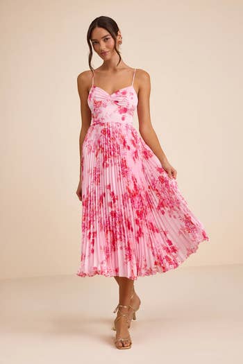 We hope you love our recommendations! While every product is independently chosen by our editors, BuzzFeed and our publishing partners may collect a share of sales or other compensation from the links on this page. You can read more about how our affiliate partnerships work in our Editorial Standards & Ethics Guide. No more stressing when you see another engagement announcement on Instagram. I’ve got you covered. Wedding season is coming in full force, and it seems like every week you get a new wedding invite in your mailbox. It’s time for new heels, earrings, purses, and, of course, dresses. So before you panic-buy at the mall, take a look at these cute dresses, perfect whether the wedding's set in a garden, a barn, a royal castle, or even a villa in Italy. You’ll find a variety of fabrics and silhouettes from breathable mesh to stunning lace, as well as jaw-dropping necklines that’ll become permanent additions to your wardrobe. And a variety of price points too, from gorgeous Amazon finds under $50 to stunning splurge-worthy gowns from places like House of CB and Nordstrom. I did the heavy lifting, so now you just have to dance the night away. Catch the bouquet for me! A slinky asymmetric neckline maxi dress fit for almost any wedding theme, dress code, and venue. The striking neckline will separate you from the other hundred guests and is very much deserving of a mid-reception photo shoot. Get it from Pretty Little Thing for $32+ (originally $90; available in sizes 0–12 and two colors). A silky slip dress that'll have you strutting around like "I'm THAT girl!" — trust everyone at the wedding knows it. Reviewers love how chic and comfortable it is with one reviewer even wearing it in white as their wedding dress. If that doesn't tell you how beautiful it is, I don't know what will. Promising review: "This dress exceeded my expectations (especially coming from Amazon)! Finding a plus-size dress is not a fun task, but this dress made me feel super sexy and was perfect for my friend's semi-formal wedding. The fabric felt nice and did not look cheap. The only thing is that the fabric wrinkles easily even if it’s been hung up for a while. Overall, I loved this and would highly recommend it." —Erica Get it from Amazon for $29.99+ (available in sizes L–5XL and 24 colors and patterns). A square-neck long-sleeve mini dress for only $30 because even if you aren't the one getting married, you still end up dropping a pretty penny. It's affordable, simple, and still feels elegant. I'll let the 400 5-star reviews speak for themselves. Promising review: "I wore this to a wedding, and it was perfect. It was the perfect length and didn’t show any cleavage. I liked how I even had the option to wear it off the shoulders if I wanted to. Definitely became a staple in my closet." —Barbara suarez Get it from Amazon for $38.99 (available in sizes XS–XL and 18 colors). A simple flutter-sleeve dress to ease your nerves when you can't figure out the dress code. Rest assured, this will pass any vibe check from an indoor soirée to an outdoor cocktail hour. Thanks to the deep V-neck paired with the dainty tie back, you'll probably have this on standby for all future weddings. Promising review: "I ordered this dress for a wedding. I got so many compliments on it. It is so soft and so comfortable. I am a size 20+ with a smaller chest, and it fits really, really well. The pockets are a nice size and hold my phone and a pack of Kleenex very easily without pulling the dress down. It has quickly become my favorite dress hanging in my closet. I will be ordering more in different colors." —Autumn Holt Get it from Amazon for $33.24+ (available in sizes 14–26 and in 20 colors and patterns). A long-sleeve lace maxi dress — it's absolutely perfect for not only spring but fall and winter weddings, too. We love a multi-season dress! The sleeves will help keep you nice and warm when the wind picks up because there's no way you will have a jacket covering up this gorgeous lace. Just look at how this dress pairs with a high heel boot (!!!) *chefs kiss*. Promising review: "This is such a stylish and pretty dress. I have been looking for a dress to wear to an early March wedding, and this is it! It can be worn in winter or spring." —Danadav Get it from Loft for $42.44 (originally $84.88; available in sizes XS–XL and three lengths). A V-neck ruffle slit maxi dress that'll pair beautifully with a stunning beach setting. You'll fall so in love with this classy slit and neckline, you'll want every color. Just tell people to mind their business when they start recognizing the style after party #5 — they just don't get it. Promising review: "I would recommend this dress to every person I know. The material was super soft and stretchy. It can be worn for a formal or casual wedding. It wasn’t see-through at all and had two layers of thickness. The quality of this dress was great. Super functional for exactly what I needed." —Sydney Cordeiro Get it from Amazon for $40.49+(available in sizes S–XL and 17 colors). A floral pleated midi dress that'll have you twirling the night away, while fitting perfectly into your sister's pastel fantasy garden venue. Especially when paired with a cute white cardigan, so you can quickly go from a chilly indoor cocktail hour to a hot outdoor dance party later in the night. Promising review: "I absolutely adore this dress and got so many compliments on it! It's comfortable and classy. I wore it without a bra, but it could easily cover a strapless bra if needed. The one drawback is that the silky material made it so the adjustable straps don't stay adjusted, so it did require some fixing throughout the night. I'm sure it's easy enough to fix, though, and I will absolutely find other events to wear this to!" —Rachel S. Get it from Lulus for $89 (available in sizes XS–XXL and two colors). A sleeveless chiffon maxi dress for a flirty, fun look that also comes in 27(!!!)