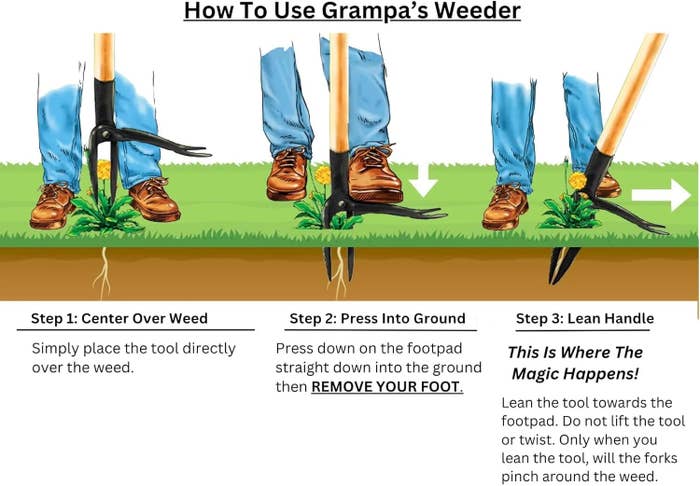 We hope you love our recommendations! While every product is independently chosen by our editors, BuzzFeed and our publishing partners may collect a share of sales or other compensation from the links on this page. You can read more about how our affiliate partnerships work in our Editorial Standards & Ethics Guide. “After 15 minutes, we’d filled at least 3 buckets full of weeds.” Made by a family-owned small business, Grampa’s Weeder has been around since 1913, according to the brand. Over 100 years later, it’s a viral TikTok darling and an Amazon bestseller with over 47,000 5-star ratings. The weeder’s handle is 45 inches long and the head has a footpad that you step on to push the tool into the ground, so you can pull out weeds without needing to bend down or kneel in the dirt. This is especially handy for people with mobility issues, arthritis, carpal tunnel, or a large area they need to cover because of how quickly it pulls. The head’s four-claw design is best for working on softer soil, according to the brand, but it can remove weeds down to their roots, something reviewers appreciate. “This is the best thing I have EVER bought. It plucks the weeds right out of the ground, full root and all! It could not be easier or more fun to use!” said one reviewer, who also noted the tool “goes into the ground like butter.” “I never knew I could be in love with a yard tool, but I guess the universe works in mysterious ways. I have fallen in love with this thing, and I can not get enough. I walk around my yard pulling weeds out all the time,” one reviewer wrote. They also called the tool the “best invention ever.” “I love that I do not have to bend over, this tool is seamless, and very easy to use.” Another said, “What would have taken me hours to do took 20 to 30 minutes, tops. The best part is that it was sooo satisfying. I feel like sneaking into all my neighbors yards and getting all the weeds. It’s addicting lol. Just buy it.” Multiple others were so enamored with the weeder, they also gifted it to friends and family. “Have since bought 2 more for each father for Fathers Day and they love them,” one reviewer said. “My dad 90 years old finished his yard and has moved on to neighbors yard. It makes it effortless to get out weeds of all kinds not just dandelions.” Our lawn was absolutely overrun with dandelions, as if the yard had just given up and decided to become a salad bar. Enter this magical little device. Grampa’s Weeder doesn’t just pull weeds, it extracts their soul. Whole roots, clean pull, no bending over like a gremlin with lower back issues. The satisfying pop of the dandelion surrendering to your superiority? Immaculate. I now roam the lawn like a justice seeking lawn wizard, avenging grass one weed at a time. If you want to feel powerful, productive, and slightly petty about plants, this is the tool for you.” —JesOneS “I just took this out and used it for the second year. With hip and back pain that hinders me from mowing and weed whacking, this simple tool allows for me to stand up straight, pull the weeds, slide my hand to the end to release the weed, and throw it into the trash can next to me without ever bending over. Simple, but a game changer!” —Linda L. “Where has this been my whole life?! I was so sick and tired of trying to pull weeds and not getting the whole root. Not only was it hard and hell on the hands it was so frustrating! I bought this and it is so easy! Step, bend, and pull. My hands don’t hurt nor does my back or knees. My kids actually want to do it because it’s so easy! I kind of find it fun! I want to go pull weeds in random fields! It is so easy and quick! The tool is sturdy and very durable especially against a 4 and 6 yesr old who treat it like a pogo stick! I have never had weeds come out ao easy and it’s not sharp! Even thought it’s not sharp it is easy to use and fits over all weeds.” —Katie “I love this thing! I enjoy going out to weed now! 😅 I recommend this to at least 3 people who bought and love it too! I’m glad I got the good brand one because I know the cheaper ones have broken quickly for some people! My only complaint is that maybe I should have bought 2 because when my daughters see me using it they want to take a turn and then don’t give it back 😂😅 the sound of the roots ripping out is so satisfying!!” —Joanne gentzler Reviews in this post have been edited for length and/or clarity.