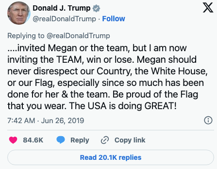 “I am a big fan of the American Team, and Women’s Soccer, but Megan should WIN first before she TALKS!” I’m Karlton, the Senior Editor and Operations Lead here at BuzzFeed, I work with the sponsorships and branded teams, but also write and edit a wide variety of articles.Over the past five years, I've written and edited a variety of topics, from celeb interviews to politics and sports. Stephen Curry doesn't hold back on whether he'll vote to visit White House. pic.twitter.com/n2PBAtYQdA